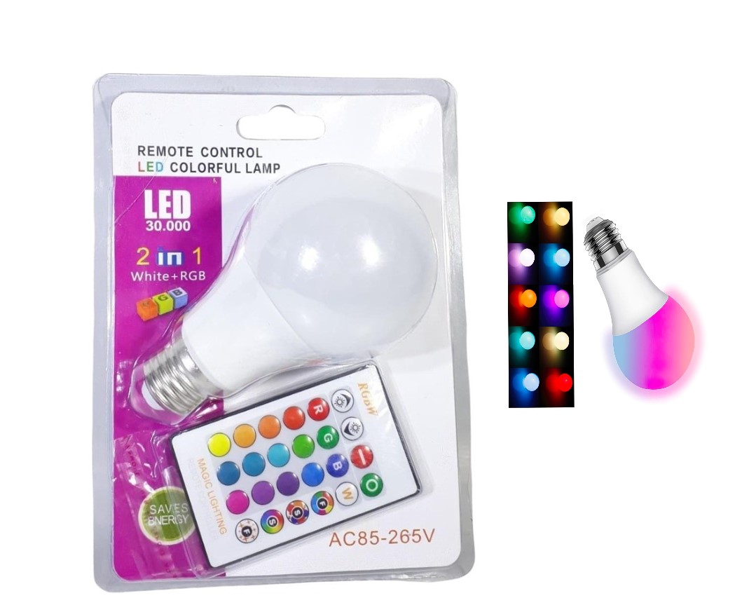 Descripción: Lámpara RGB con efectos de iluminación • Incluye control remoto con efectos: Flash, Strobe, Fade, Smooth • Colores: Rojo, Verde, Azul y combinaciones de estos, 16 en total • Material: Plástico / Aluminio • Consumo: 12W • Distancia Remota: 5 metros • Alimentación: 220Vca – 50Hz. • Zócalo: E27, apto para cualquier portalámpara • […]